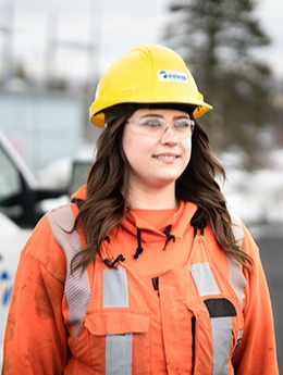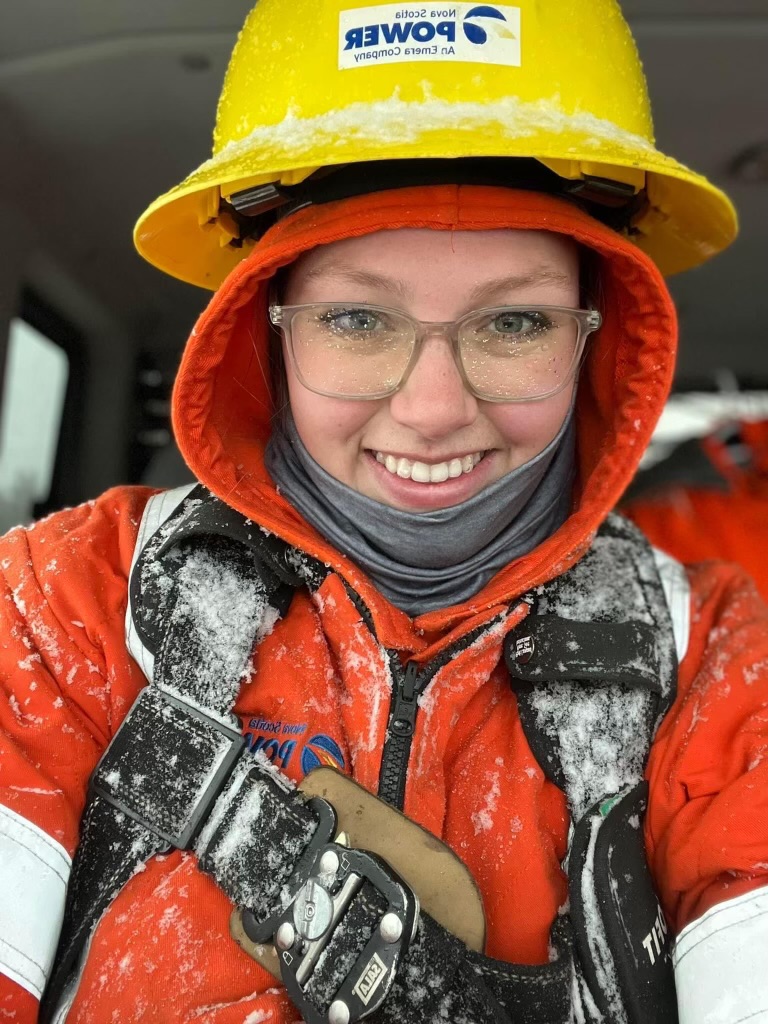 Sophia Creaser, Powerline Technician - Halifax: “I love linework and working during storms—it’s challenging, but you feel a sense of accomplishment. Even when the work is tough, at the end of the day, when you see a